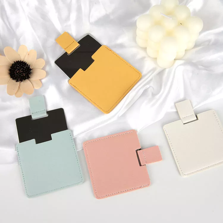Toto kapesní zrcátko o velikosti kreditní karty má měkký potah z PU kůže a povrch z nerezové oceli odolný proti rozbití. Jeho tenký, přenosný design se snadno vejde do peněženek nebo tašek, ideální pro opravy na cestách. Přizpůsobitelné logo a barvy z něj dělají ideální pro dárky nebo branding.